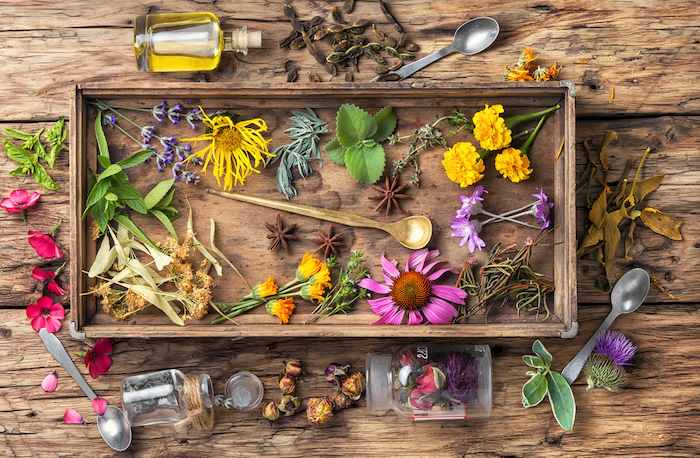 כמה צמחי מרפא נפוצים כוללים כורכום, ג'ינג'ר, שום וטימין.